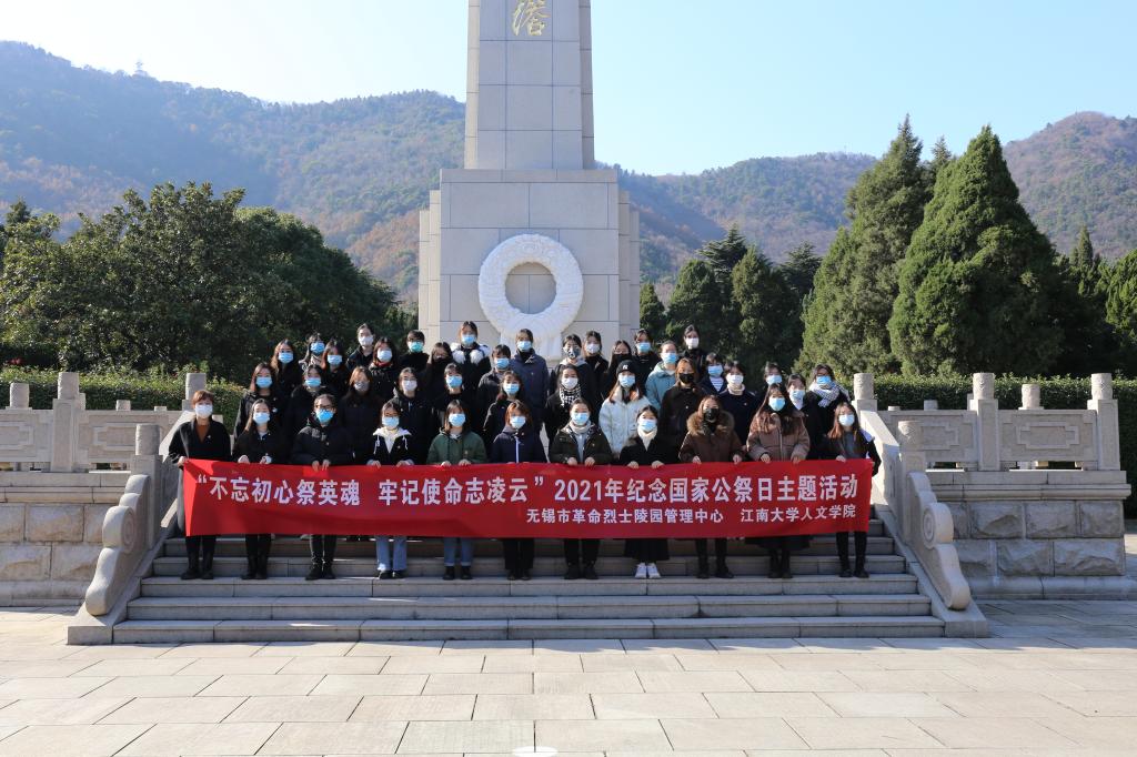 岁寒之时,国家公祭之日,以国之名,追忆逝者,缅怀英灵。12月13日是第八个南京大屠杀死难者国家公祭日,当天上午,BV伟德官方网站前往无锡市革命烈士陵园开展“国家公祭日”主题党日活动,BV伟德官方网站分团委书记赵丽敏、党建辅导员邓昌海、49名学生党员和青马工程班学员代表共同参加了本次活动。上午九时,活动正式开始,烈士陵园广场庄严肃穆,全体人员奏唱中华人民共和国国歌。国歌唱毕,大家脱帽肃立,向牺牲的先烈和遇难同胞默哀。...