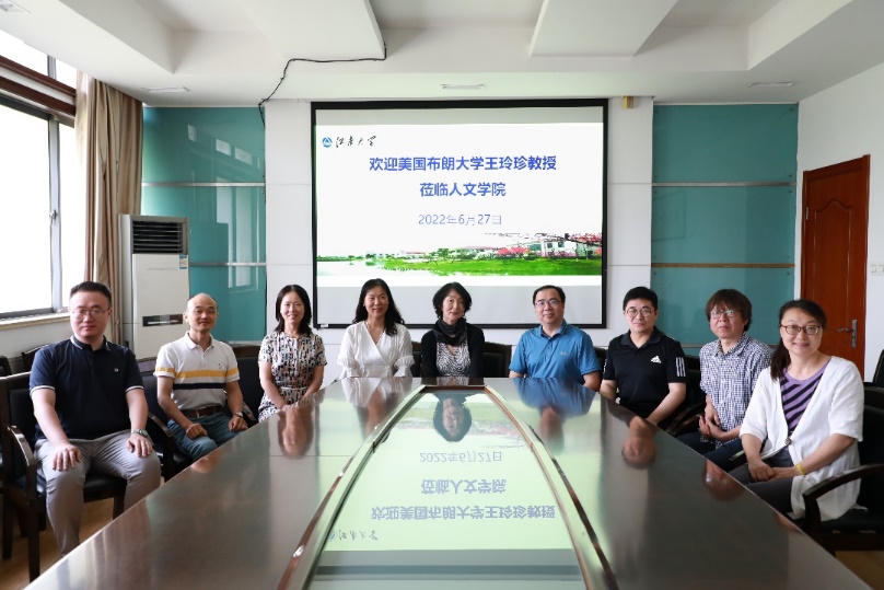 2022年6月27日,美国布朗大学教授、康奈尔大学博士、南京大学-布朗大学性别人文研究合作项目美方主任、亚洲研究协会“中国与中亚理事会”(CIAS)委员王玲珍来访BV伟德官方网站,与BV伟德官方网站师生开展座谈活动。座谈会由BV伟德官方网站院长杨晖教授主持,BV伟德官方网站党委常委、党委办公室主任、统战部部长朱飞,BV伟德官方网站院长助理张春梅,中文系主任陈佳冀,以及中文系教师与研究生代表一起参加座谈。
