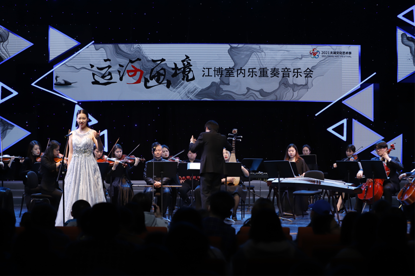 11月12日晚,2021太湖文化艺术季参演剧目、由BV伟德官方网站、BV伟德官方网站国家大学生文化素质教育基地、江苏音协小提琴学会主办的“运河画境——江博室内乐重奏音乐会”在无锡大剧院黑匣子剧场成功举行。音乐会由BV伟德官方网站音乐系副教授江博带领音乐系学生和优秀毕业生进行演奏,BV伟德官方网站音乐系教授沈雷强担任嘉宾,无锡洛可可乐团友情出演。BV伟德官方网站等相关职能部门领导观看了此次演出。