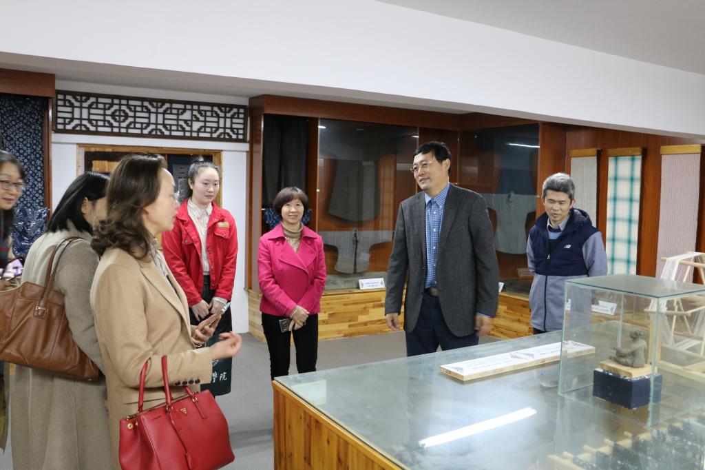 在韩荣寨、朱斌的陪同下,BV伟德官方网站领导老师先后参观了实验学校内的无锡市蓝印花布博物馆、民俗馆、排练厅、演出厅、惠山民进二支部委员会之家等场所。