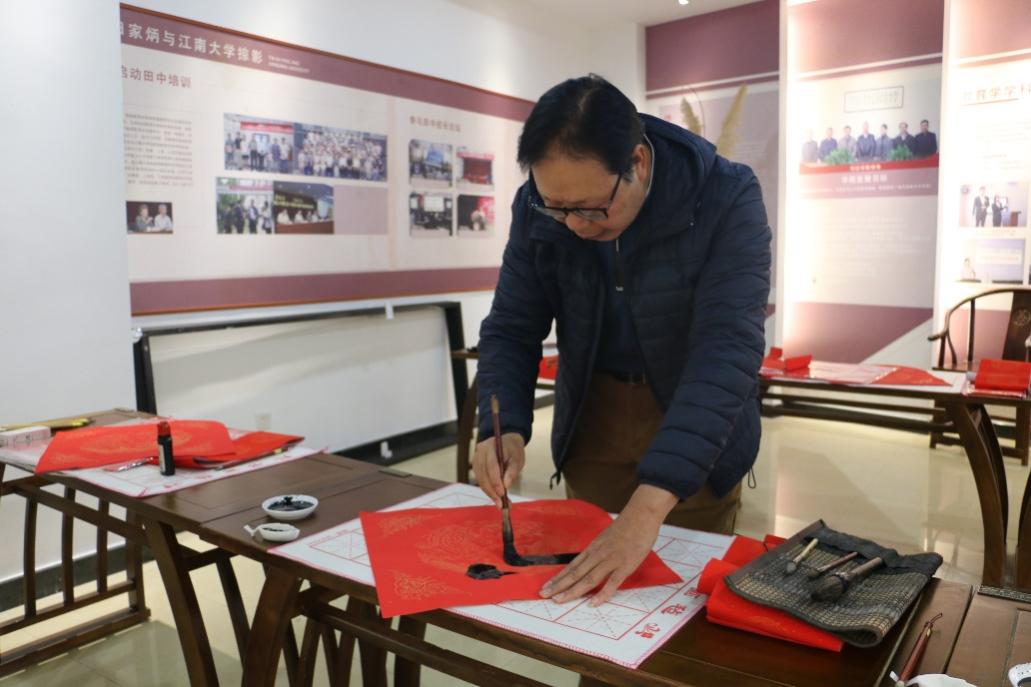 值此新岁来临之际,为共同迎接新春佳节,弘扬传统文化,12月30日下午,BV伟德官方网站在田家炳先生事迹陈列厅举办“送春联写福字 金洒红宣迎新春”新年特别活动。无锡市书法家协会会员、无锡市私营个体经济协会理事任理培先生和校党委宣传部胡奕老师以及BV伟德官方网站十余名“书法小先生”参与了此次活动,此次活动由中文本科生第一党支部承办。