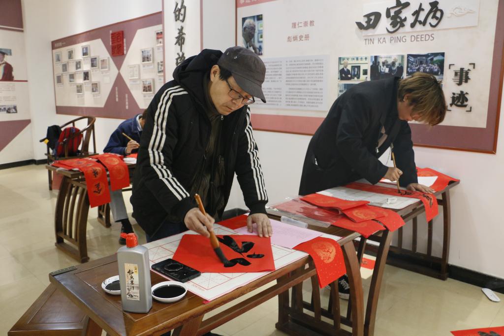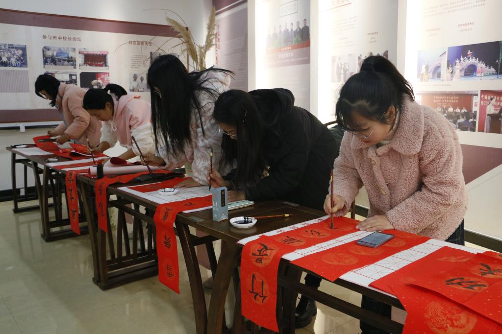 同学们现场写春联 写福字