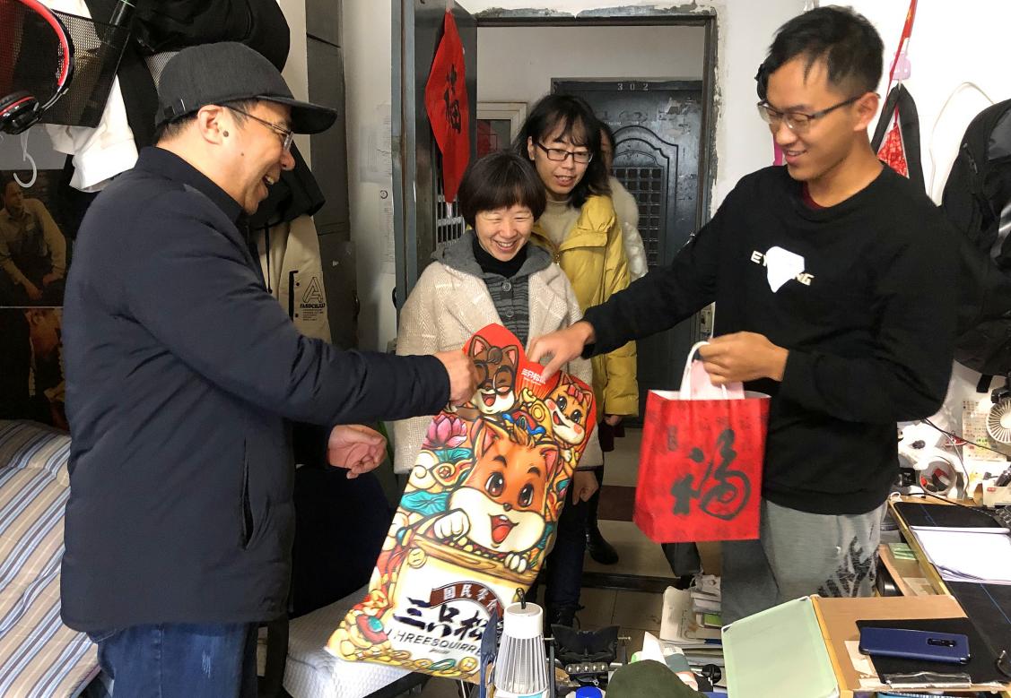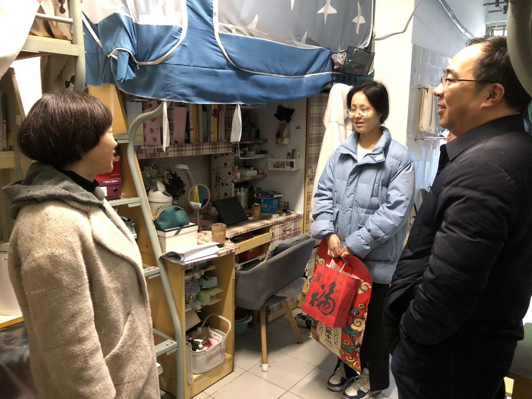春节将至,年味渐浓。1月26日,正值农历小年,BV伟德官方网站党委书记姚剑英、院长杨晖、党委副书记兼副院长李萍、分团委书记赵丽敏以及各年级辅导员一行8人来到学生宿舍、研究生工作室,看望慰问留校学生,为同学们带去温暖问候和新春祝福。