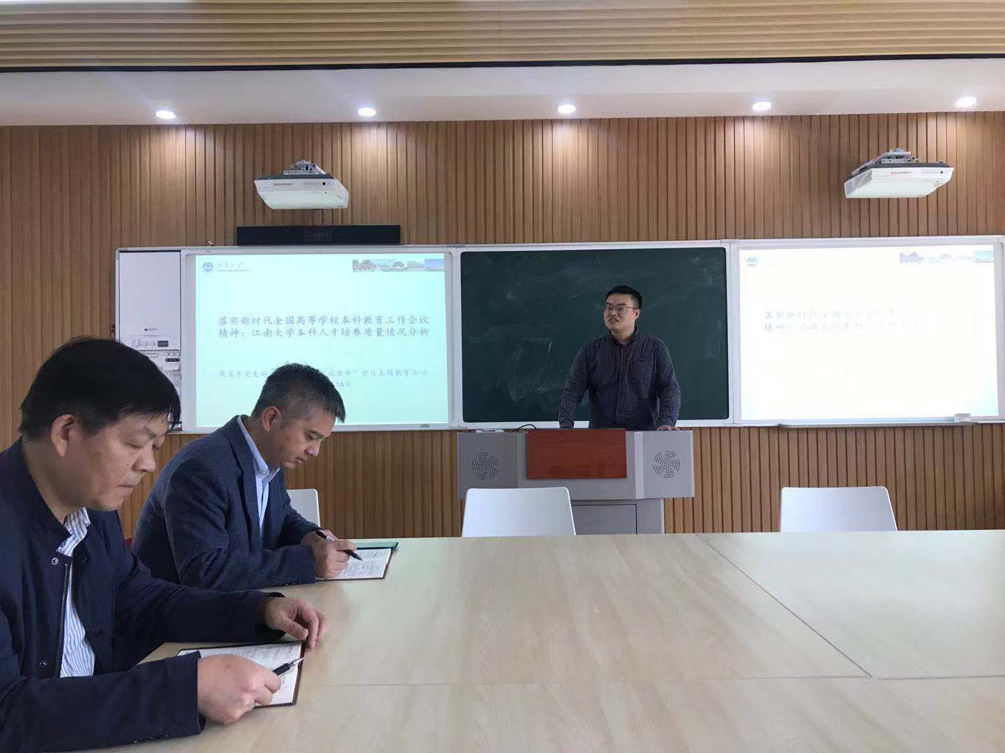 10月16日午间,教育系教工党支部在田家炳楼313举行了主题为“落实新时代全国高等学校本科教育工作会议精神:BV伟德官方网站本科人才培养质量情况分析”的主题教育活动。BV伟德官方网站院长田良臣教授、副院长蔡爱国教授、教育系主任杨启光以及支部全体党员出席了本次活动。蔡爱国副院长主持了本次活动。活动的主要内容有:党支部书记屈廖健就BV伟德官方网站本科人才培养质量情况进行宣讲、全体党员就学科建设与发展路径等进行讨论与交流。