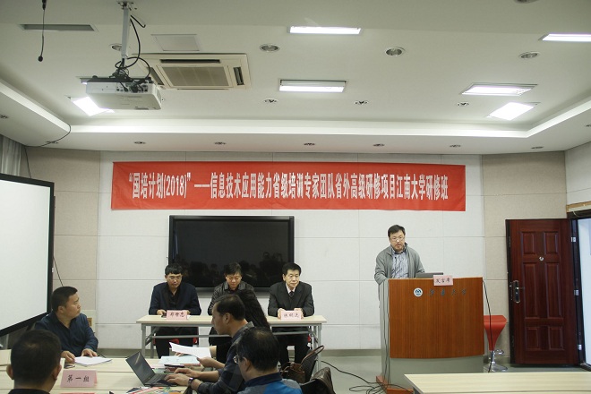 吉林省中小学教师信息技术应用能力提升工程执行办公室郑世忠副主任代表参训单位讲话,他介绍了此次信息技术培训相对于其它教师培训的项目特色和意义,重点强调了本次培训对参训教师的重要性。在教育部即将下发《关于实施全国中小学教师信息技术应用能力提升工程 2.0 的意见》(2018—2022),要求到 2022 年,构建以校为本、基于课堂、应用驱动、精准测评的教师信息素养发展新机制。为适应“提升工程 2.0”新变化新思路,吉林省提前谋划、提前准备。以“省培”、“国培”项目为载体,有针对性地做好信息技术“人力资源”储备。