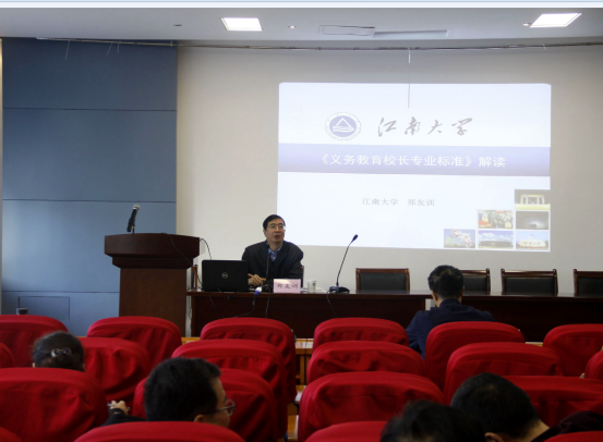 最后,项目组专家郑友训教授对培训方案进行了详细的解读。本次培训主题是:创新校长管理理念,办人民满意的学校。旨在通过培训,结合无锡市初中的办学现状、任务和特点,帮助初中校长进一步更新教育理念,提升办学水平。拓宽初中校长管理视野,提高校长的管理能力,办好人民满意的教育。本项目作为省市合作项目,培训方式采用集中学习与跟岗实践两种方式开展。