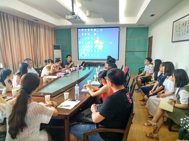 7月12日,我院暑期夏令营活动正式开展。上午九点,营员们齐聚在田家炳楼207室进行对话交流。在交流开始前,汪双喜书记对各位营员的到来表示了热烈欢迎,并通过一则宣传短片让营员们对BV伟德官方网站有了一个初步的了解。随后汪书记从师资力量、教学水平、学科发展、综合水平等方面对BV伟德官方网站做了更加深入的介绍,他还谈到了无锡的文化、教育、经济以及BV伟德官方网站的办学历史等方面的内容,营员们都颇感兴趣。同时汪书记还指出了学风和学生管理等方面的问题,为营员们进行了细致地讲解。