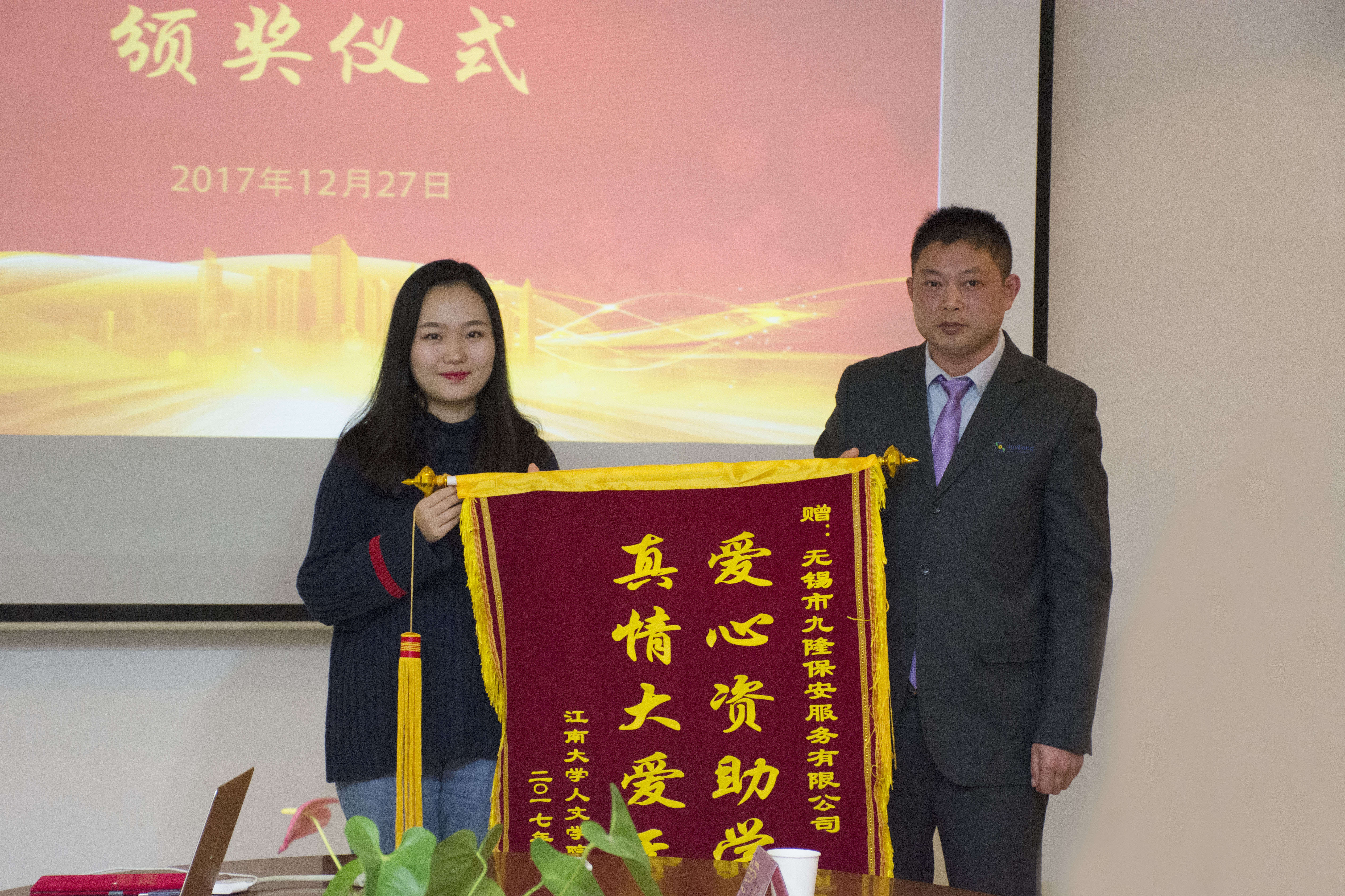 “九隆奖助学金”是无锡市九隆保安服务有限公司为了奖励品学兼优学生,资助家庭经济困难学生完成学业、自强成才而在我院设立的奖助学金。希望获奖学生努力学习,立志成才,传递温暖,回报社会!