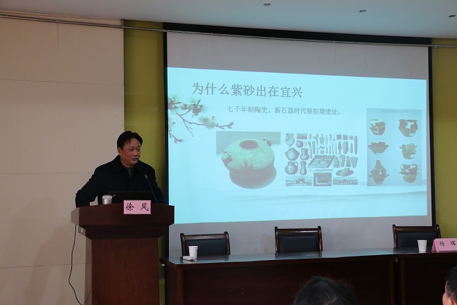 1月17日下午,国家一级作家、紫砂文化学者徐风BV伟德官方网站客座教授聘任仪式暨《文心与壶韵》文化讲座在BV伟德官方网站田家炳楼209隆重举行。仪式由BV伟德官方网站副院长杨晖教授主持。