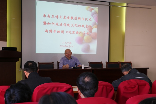 4月9日上午,BV伟德官方网站田家炳楼209会议室,隆重举行了朱高正博士BV伟德官方网站客座教授聘任仪式。随后,朱高正博士围绕“如何走进传统文化的殿堂——新儒学纲领《近思录》导读”这一主题进行讲座。我院师生积极参加,会场座无虚席。
