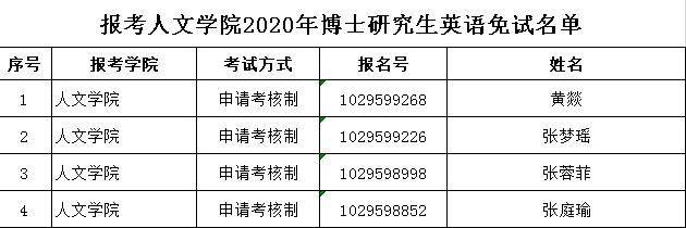 报考BV伟德官方网站2020年博士研究生英语免试名单