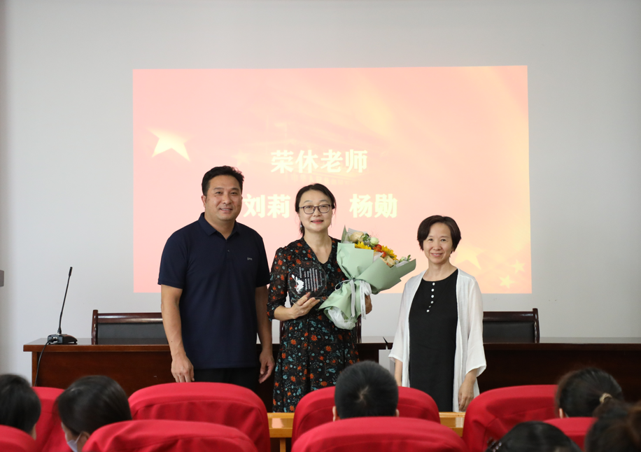 学院今年上半年荣休中文系刘莉和杨勋2位教师。中文系主任陈佳冀副教授介绍了两位荣休教师的基本情况,并对他们为学校和学生成长所做的奉献表示感谢,对他们光荣退休致以敬意和祝福。荣休教师代表刘莉发表荣休感言,并对年轻教师寄予了希望和表达了祝福。学院党委书记姚剑英、副院长(主持工作)伍红林为荣休教师颁发纪念品并献花合影留念。
