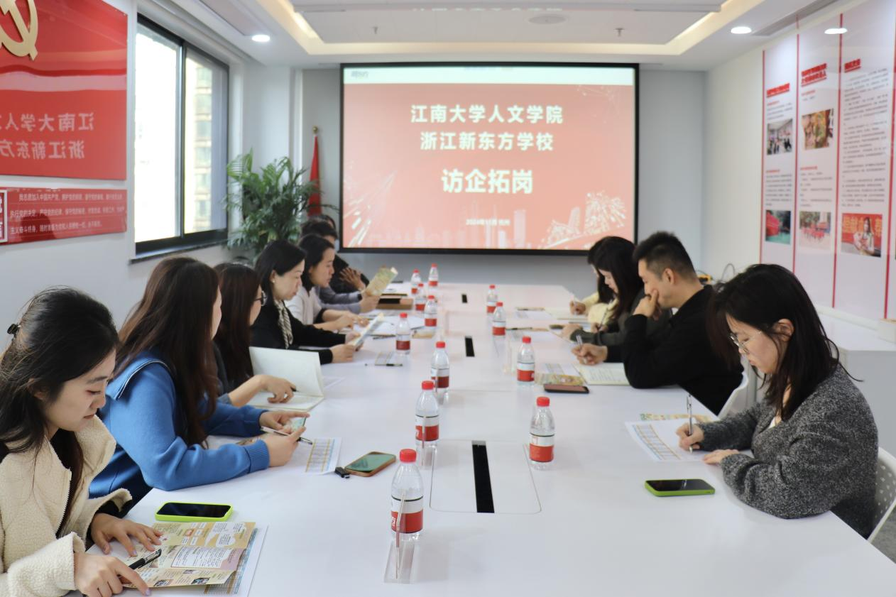 为扎实做好“百千工程”访企拓岗促就业专项行动,助力学生高质量充分就业,11月7日,BV伟德官方网站党委书记王晖,党委副书记、副院长徐璐,分团委书记邓昌海,教育技术系教师刘文辉,辅导员谢铅玉、王金星及学生代表一行赴杭州学而思培训学校与浙江新东方学校开展访企拓岗,并分别与学而思华东区域政府公关负责人屈浩然、校园招聘经理赵小乐,新东方浙江公司招聘经理蒋川、校招联系人凌君华等展开座谈交流。