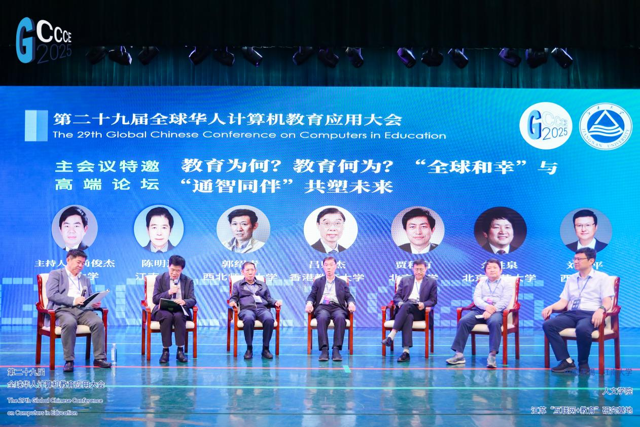 主旨演讲环节,中国台湾学者陈德怀教授、BV伟德官方网站陈明选教授分别围绕“从教育本真到AI时代的智慧重构”这一主题,发表主旨演讲。特邀高端论坛中,BV伟德官方网站陈明选教授、西北师范大学郭绍青教授、北京大学贾积有教授、香港教育大学吕赐杰教授、西南大学刘革平教授以及北京师范大学余胜泉教授六位国内顶尖学者围绕“教育为何?教育何为?‘全球和幸’与‘通智同伴’共塑未来”展开热烈讨论,深度探讨了“全球和幸”教育理念的实践路径。