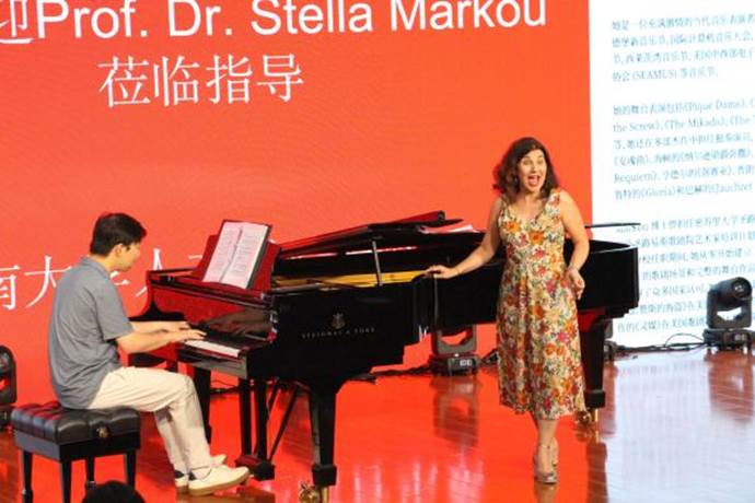 BV伟德官方网站音乐厅于2025年6月12日下午一点迎来了一场国际音乐盛宴——美籍希腊裔女高音歌唱家Stella Markou教授的声乐音乐会及大师班活动。被《留声机》杂志誉为“绝妙之作”的希腊裔美国女高音 Stella Marko教授现任美国萨斯大学声乐与歌剧系主任。此次活动由BV伟德官方网站音乐系主办,旨在促进中美音乐文化交流,为师生提供与国际顶尖音乐家面对面学习的机会。