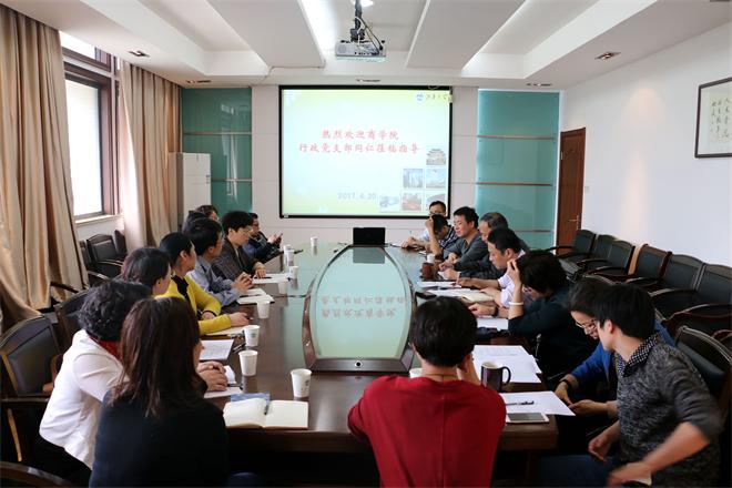 4月20日下午,BV伟德官方网站行政党支部与商学院行政教辅党支部在田家炳楼207会议室,就党支部工作进行了交流、学习,商学院党委书记李佳敏、BV伟德官方网站党委书记沈贵鹏参加活动并分别致辞。双方就如何结合岗位特点、推进支部“两学一做”学习教育常态化和制度化、提升党员先进性和管理能力,结合贯彻全国高校思想政治工作会议精神,发挥管理育人和服务育人的针对性和实效性,支部特色工作等方面展开了交流,并就各自工作方法等内容进行了研讨。大家普遍认为:作为学院行政教辅支部的党员同志承担着服务于学院教学、科研等主体工作的职能,要坚持和加强“两学一做”学习教育,强化服务意识、大局意识和服务能力,在奉献和服务中体现和发挥党员的先进性,切实践行服务育人、管理育人的宗旨;党支部要把民主生活会等理论学习教育活动与实践性教育活动有机结合起来,提升党支部的凝聚力和先进性。
