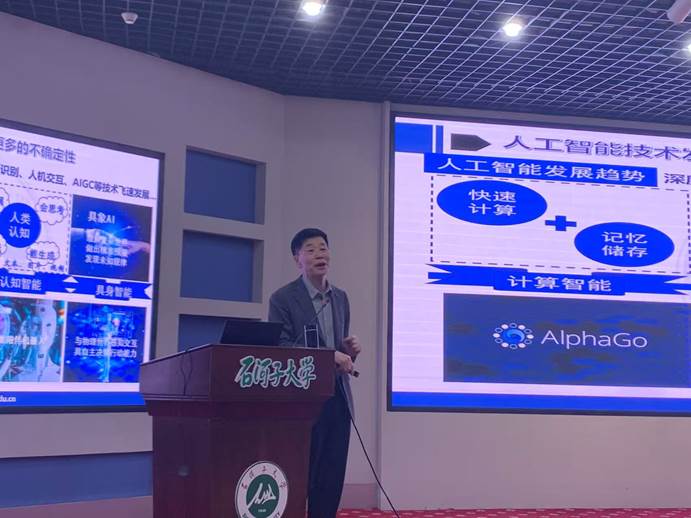 陈明选抵达石河子大学后,迅速投入紧张而充实的支援工作。在石河子大学师范学院党委书记、院长的陪同下,他参观了军垦博物馆与校史馆,深入感悟兵团精神与边疆教育发展的历史积淀。4月21日下午,陈明选面向石河子大学教务处、各学院教学负责人及骨干教师,作题为《为未知而教 与AI共学:数智时代高校教学范式的转型与重构》的学术报告。他以数十年教学研究经验为根基,结合前沿教育理念,为边疆高校教学改革提供了创新思路,受到与会教师的高度赞誉。
