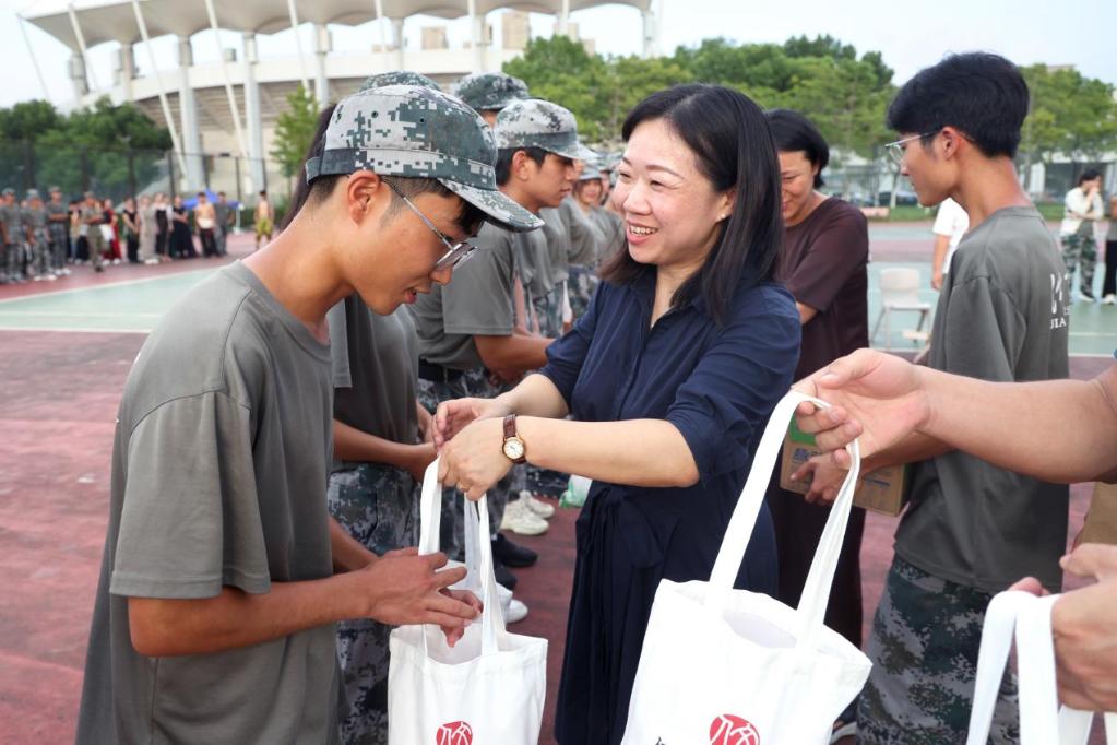 9月15日下午,BV伟德官方网站党委书记王晖,院长伍红林,承训部队带训教官、指导员刘丙寅,营长崔遵彬,学院党委副书记、副院长徐璐,人武部国防教育中心科长刘璇刚,学院分团委书记邓昌海等来到军训场地,看望慰问BV伟德官方网站2025级参训学生及带队教官。