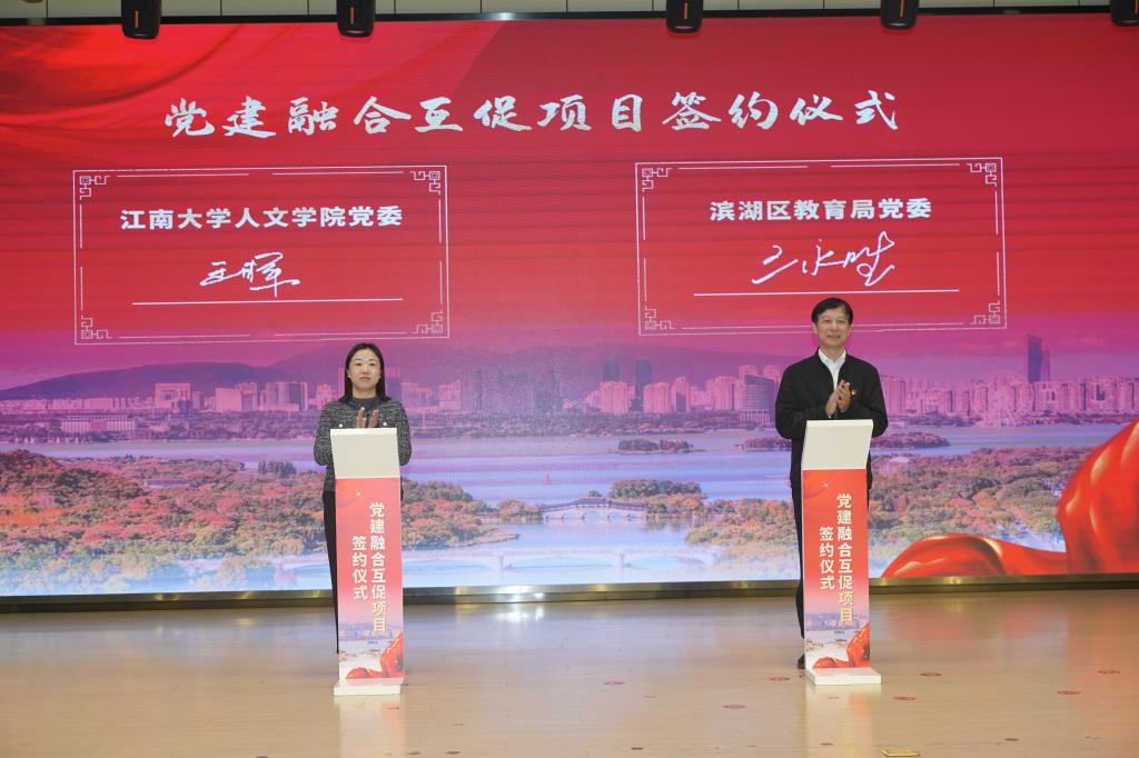 为促进高校与基础教育党建工作深度融合、资源共享、优势互补,BV伟德官方网站党委与滨湖区教育局党委携手合作,王晖、王永胜共同签署了党建融合互促项目协议。王晖指出,项目以“资源共享、优势互补、协同创新、共同发展”为宗旨,聚焦党建引领下的“滨湖学校发展共同体”建设、共建教科研实践共同体、共育高素质教师队伍、共推江南文化传承创新四方面开展深入合作。她表示,双方将以此次签约为契机,通过实实在在的合作项目共建一批教学实践基地,共研一批教育教学改革项目,共育一批高素质专业化教师,将高校的智力优势转化为推动区域教育高质量发展的强大动力,共同推动教育领域党建工作迈上新台阶。