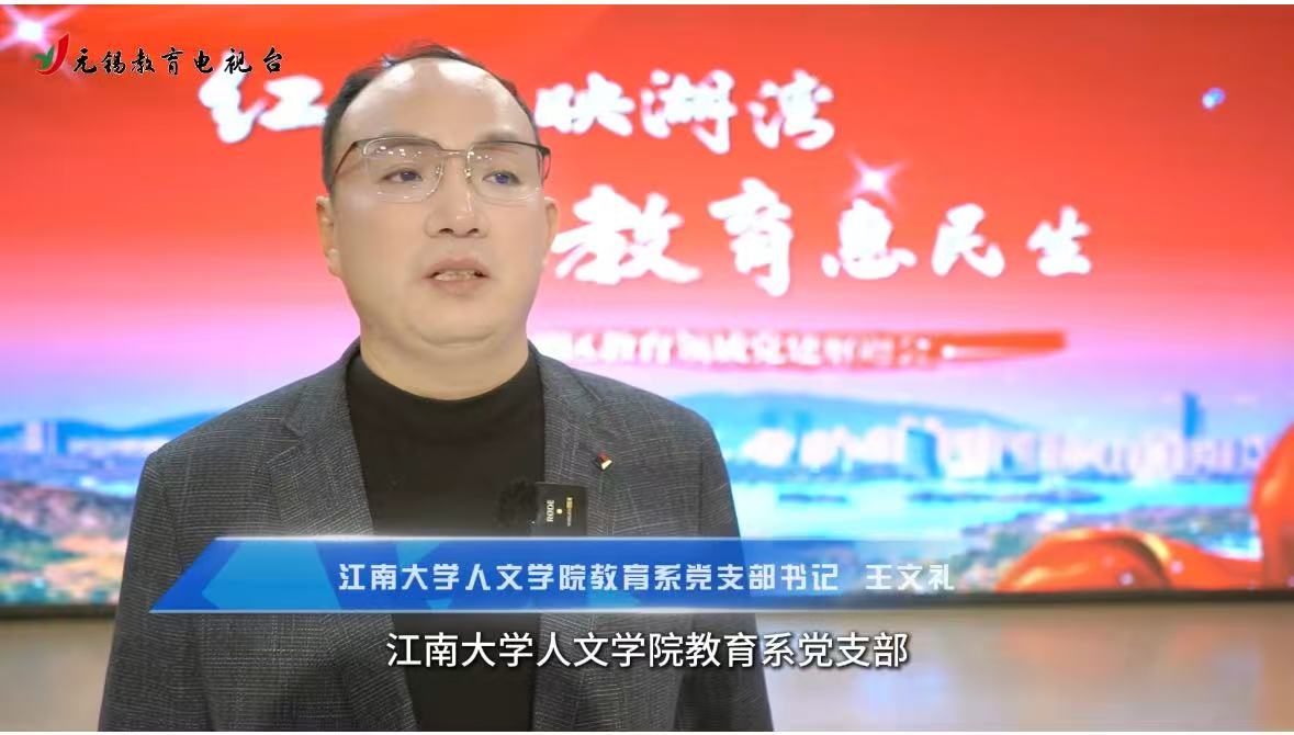 王文礼接受无锡市教育电视台采访,他表示BV伟德官方网站教育系党支部充分发挥学科优势、师资力量及党建经验,与无锡市滨湖区七所学校开展党组织共建,通过党建引领、资源共享、专业赋能,实现党建引领“一融双高 ”,推动党建与教育教学、科研创新深度融合,形成“1+7+N”的可持续合作范式。