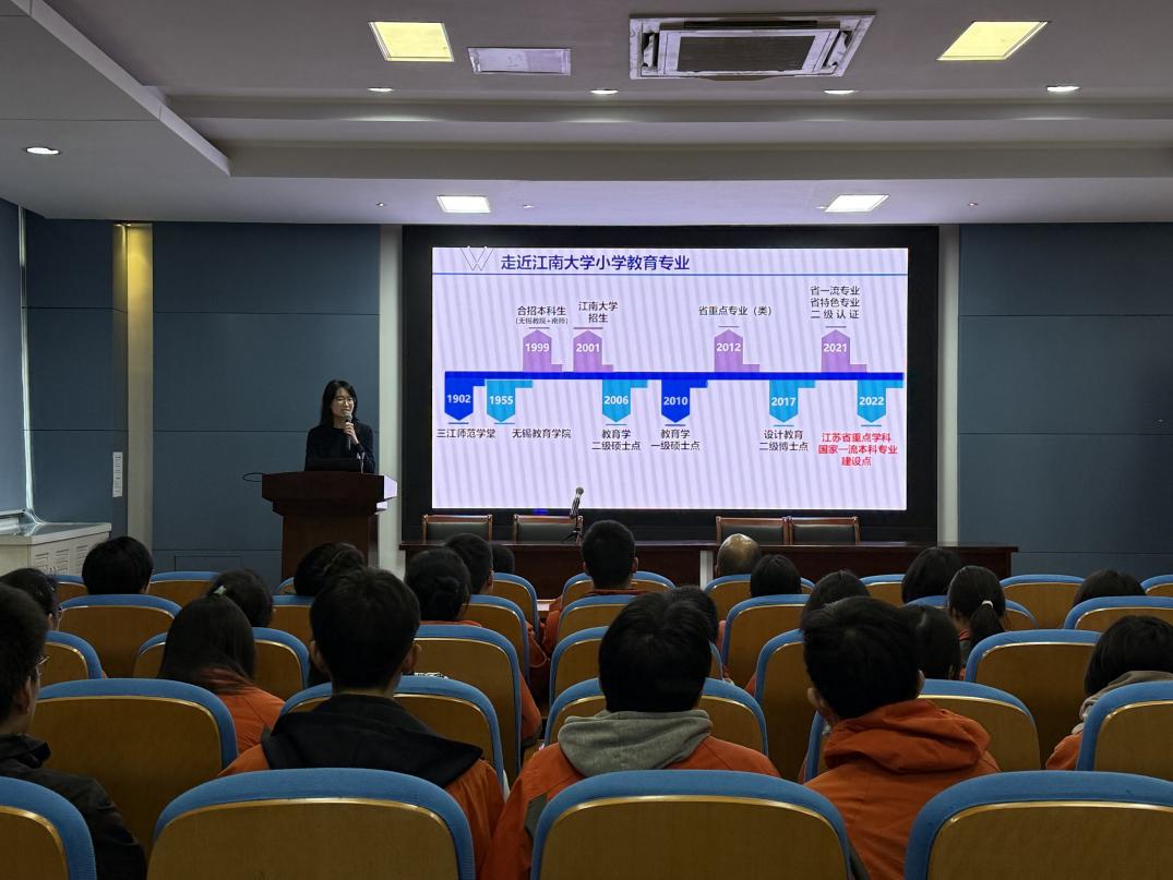江苏省锡东高级中学是国家级示范性高中、江苏省首批四星级高中,2023年被授予BV伟德官方网站优质生源基地。本场宣讲由BV伟德官方网站教育系殷越副教授、小学教育(师范)专业2022级学生曲瑞瑞担任主讲。殷越老师聚焦BV伟德官方网站小学教育专业,从师资力量、特色课程体系(方法课程、产教融合课程、实践教学体系)、各类专业与文体赛事活动,以及 25% 以上的考研保研率和优质就业前景等方面,细致介绍了专业优势。BV伟德官方网站以深厚人文底蕴为基,打造小学教育专业特色培养路径,课程创新且贴合教育前沿,产教融合与实践教学深度联动,致力于培育兼具教育情怀与专业能力的未来教育中坚力量。曲瑞瑞学姐作为一名即将毕业的学姐,生动分享了自己在专业学习中的成长与收获。她从多元课程学习、丰富实践历练,到BV伟德官方网站“美在江南、食在江南、住在江南”的人文校园生活,再到个人成长的深刻感悟,全方位展现了BV伟德官方网站在塑造学生专业素养、人文情怀与实践担当上的独特优势,亲切感召锡东高中学子报考BV伟德官方网站,在充满人文温度与成长机遇的平台上,开启教育梦想与人生成长的崭新篇章。