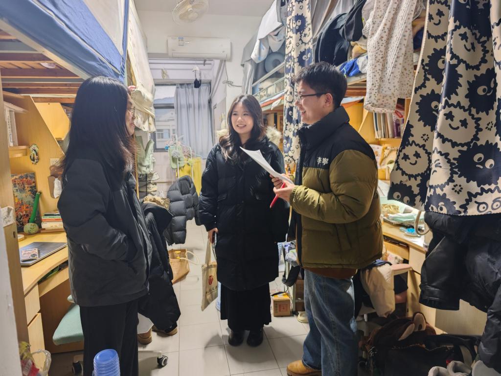 下午,毕业班辅导员谢铅玉、王振彬深入学生宿舍,走访慰问考研学子。他们与同学们面对面交流,分享高效调节心态的秘诀,并鼓励大家相信长期积累的力量,以平和自信的姿态完成最后一程的冲刺。这份走进宿舍的关怀,延续了学院对考研学子一贯的重视与支持,让温暖的祝福覆盖到每一位奋斗的身影。